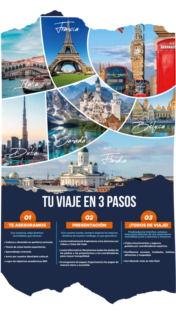 Por favor completa nuestro formulario para indicarnos el destino que tienes en mente o para recibir asistencia personalizada en la búsqueda del viaje ideal para tus estudiantes. En Moondi, transformamos cada viaje en una experiencia educativa inolvidable.